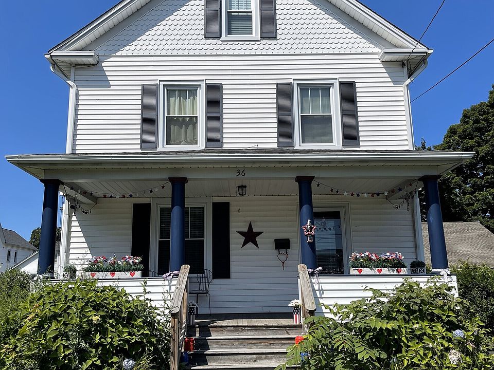 Charming Colonial with a beautifully manicured yard, offering both curb appeal and low maintenance. Inside, the home is meticulously maintained, allowing you to either keep the current paint, or select a color that reflects your personality. Features include an updated kitchen, 3 bedrooms, 2 full updated baths, a formal dining room, and stunning original woodwork throughout. Additionally, there's a finished walk-up attic, a one-car garage, and city sewer and water. This home beautifully combines historical charm with modern living.
