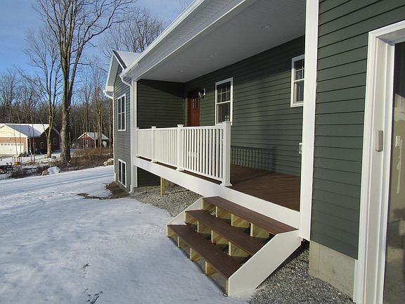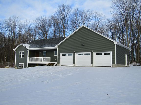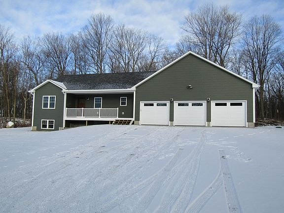 New Construction, cathedrial ceilings in the living area, open floor plan living kitchen dining, gas fireplace with stone accent, radiant heat on first floor and basement floor, full basement is studded and insulated for additional living with egress windows. Granite counters, master bedroom with master bath and a walk-in closet. Mini split heat pump and AC. Hardwired back up Generac Generator. 3 bay insulated finished garage. 3 br full and 3/4 bath. Covered porch.