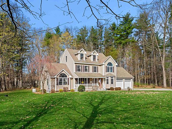 Welcome to the quaint and desirable town of East Kingston in the SAU16 school district; close to shopping, restaurants, and commuter routes in a country-like setting. This home has been meticulously maintained and it shows. You’ll be welcomed by a farmer’s porch and an open concept living area w/ eat-in kitchen, large family room with gas fireplace, formal dining area and flex space (home office/playroom/formal living; you decide!) The kitchen features granite countertops, stainless appliances, a gas range, and dual pantries. Directly off the kitchen is a half bath with laundry. The second floor has a spacious feel with a large, open hallway, a roomy primary en-suite w/ walk-in closet, two additional generous-sized bedrooms and another full bath. If more living space/another bedroom is needed, the enormous walk-up attic offers possibilities for expansion. The basement is great for storage, and has direct access from the home and garage. The oversized garage is large enough for three cars (if one is a small summer roadster.) Home also includes a whole-house, auto-start generator and water softener system. Additionally, there is a separate shed for a lawn tractor, yard tools, gas grill in winter and outdoor gear. The home sits on a flat 2-acre lot in Maplevale Orchards, a serene, picturesque neighborhood great for walking, bike riding and apple picking.