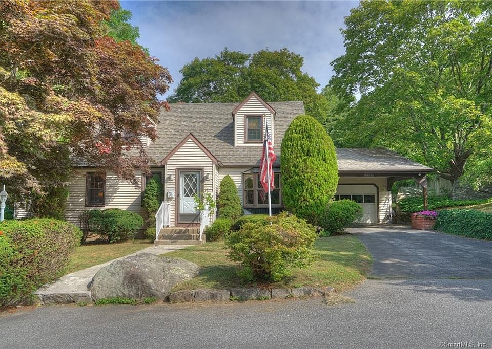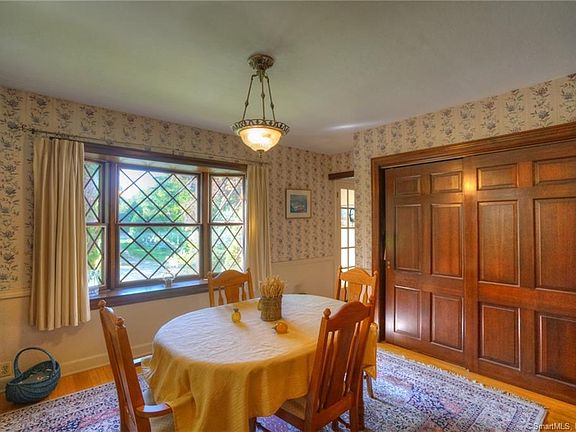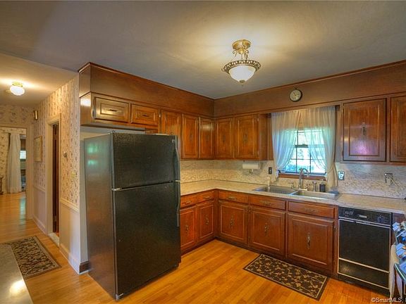 Dormered Cape Cod 2 story home with 3 bedrooms, 2 full baths, and 1,536 sf on 0.36 acre lot with hardwoods throughout first level! Sunroom accessed via sliding door in primary bedroom on main floor. Kitchen has wide double-sink and additional counter space leading to dining room. Dining room features front facing bay window, sliding door closet with half wall granting additional storage space. Two large upper-level carpeted bedrooms and full bath. Attached garage with access to kitchen. Full basement with carpeted family room, wood stove, bar area and laundry room. Shed in spacious backyard for extra storage. Thames River waterfront accessible.