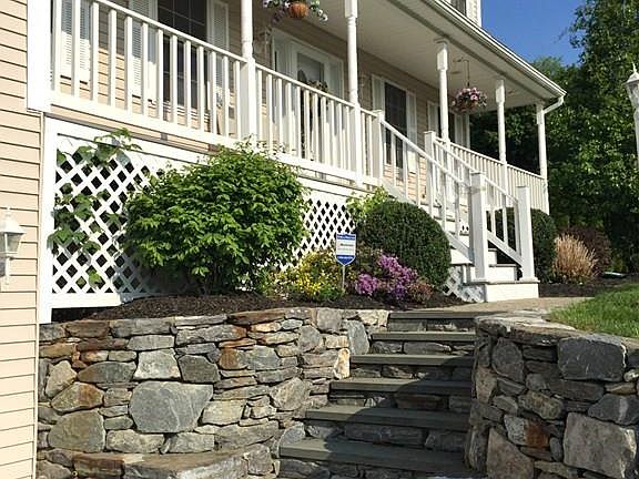 A perfect 2006 Colonial with a delightful farmer's porch to enjoy! The home is set on a quiet cul-de-sac of comparable homes yet is convenient to nearby shopping,schools and Commuter rail to Boston. A wonderful stone wall curves gracefully & guides one to dramatic blue stone steps leading to the front door. A spacious open foyer greets you entering the home, w/ formal living room & dining on both sides. The lovely cherry kitchen accented with granite countertop, work island & recessed lights is central to the home. A striking "great room" w/ vaulted ceiling, wood burning fireplace, ceiling fan & many windows opens to oversized deck. The layout flows & shows quality details & HWF's on both levels. The upstairs offers MBR with built-in California closet and walk-in closet now used as home office. Other bedrooms w/ Calif. closet too. Lower level is enormous - high quality finish - plaster ceilings, recessed lights. Buderus high end furnace, increased insulation in attic.Wonderful value!
