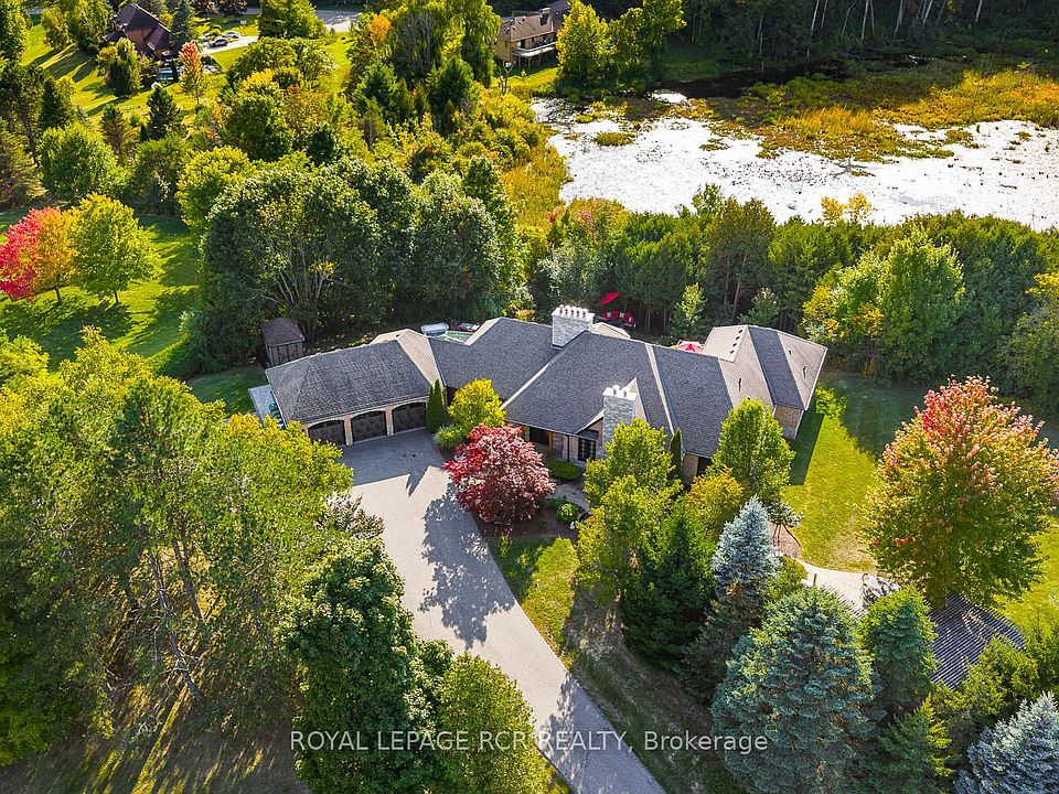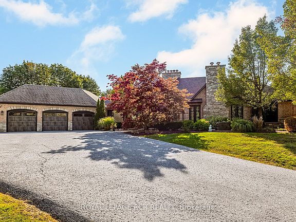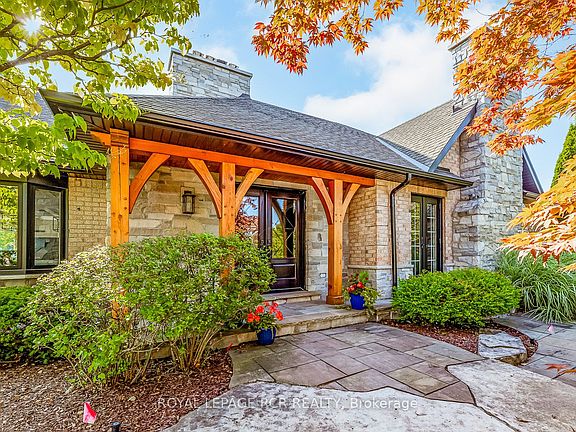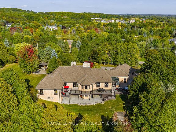 Architectural Design by David Small, Expansive Light filled Exec Bungalow offers wonderful sweeping panoramic 360 views of Caledon, unprecedented privacy and an abundance of custom details. Entertainers Dream inside & out- over 400k spent interior renos and another 400k in Landscape/Hardscape featuring a Grand Outdoor Kitchen/ Bar Patio area. All 4 bdrms w 4 ensuite baths, 4 fireplaces. Lavish millwork & coffered ceilings with wood inlay. Custom Light Fixtures, Inspirational Foyer with Herringbone floors, Custom Doors thru out. Grand Living Rm w Antique brick fireplace, B/ I wall Cabinets, Double French Dr Walkouts to Breathtaking front gardens, walkways, waterfall pond. Floor to ceiling glass shelves and exquisite custom wall cabinetry in Dining Rm with B/I Miele Coffee/ wet bar, B/I wine fridge. Sensational Gourmet Kitchen, 10 ' Island with Marble c-tops & B/I sink, 6 burner Gas Range, Bosch double ovens, w/o to South facing sun-filled Solarium. Enjoy Hot Tub & Massive Composite decking w glass handrails off main floor overlooking 2nd outdoor patio area. Escape to the luxurious master retreat w electric fireplace, & stunning views from Bay window or w/o to perfectly sheltered sitting area on deck to enjoy sunshine & countryside views, Gorgeous Spa bathroom, large glass walk in shower, freestanding tub, functional closet design w B/I drawers, beautiful light fixtures. Light -filled Lower level living space awesome wet bar w Quartz c-tops, B/i Oven , Fireplace/Woodstove insert, B/I shelves, large workshop and storage space w high ceilings, Car Enthusiasts Dream 3 car Garage finished space/ workshop. 6195 Total space as per attached floor plans.