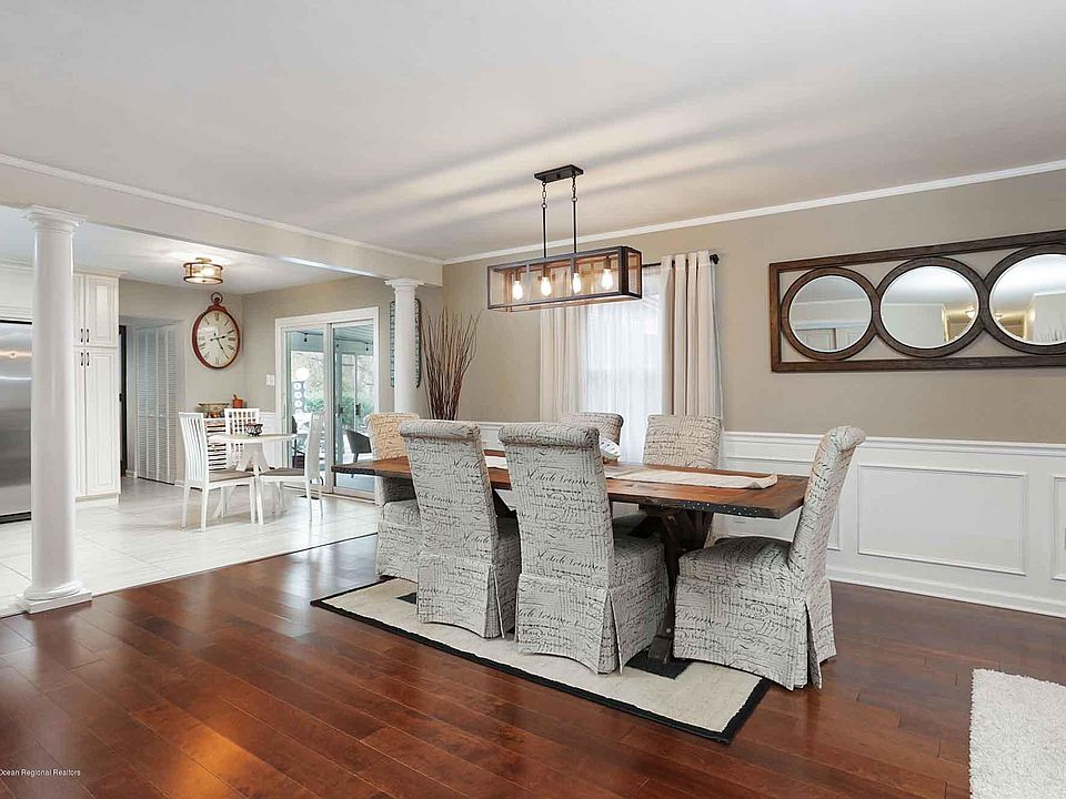 Beautifully renovated 4 bedrooms, 3 full baths features newer cream maple cabinets, upgraded granite and SS steel appliances. Three elegantly redone bathrooms with custom tile works. Master bath with double sink granite top vanity. Family room with sky light and wet bar. Newer roof, windows, exterior and interior doors. Newer engineered wood floors throughout, newer washer/dryer. New 2 zone heat and AC, New pool cover. Kitchen has a sliding door that leads to an enclosed 3 seasons porch. Fenced in backyard with your own inground pool to enjoy hot summer days. Closed to Route 9, Freehold Mall, Ideal for a NY city commuter or a Mother/daughter possibility with a great floor plan.