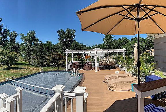 2016 New Full bathroom and Guest room on the lower level, commercial-grade laminate flooring throughout our lower level. 2017 New Gutters front/back, widened driveway and new blacktop 3" compressed to accommodate four cars, Basketball court adjustable height, Sports netting on two sides w/light & bleachers ;-) 2018 new 15' x 30' above ground pool, remodeled deck to pool edge, New complete roof sheathing, and architectural shingles, New 10’ x 16’ barn style shed from The Back Yard Store. 2019 New 330 gal. outdoor oil tank, 15' x 13' Pavilion, House & trim Painted. 2020 New Garage Door, Refrigerator, Dishwasher. 2022 Deck upgraded and expanded to Timber Tek Decking.