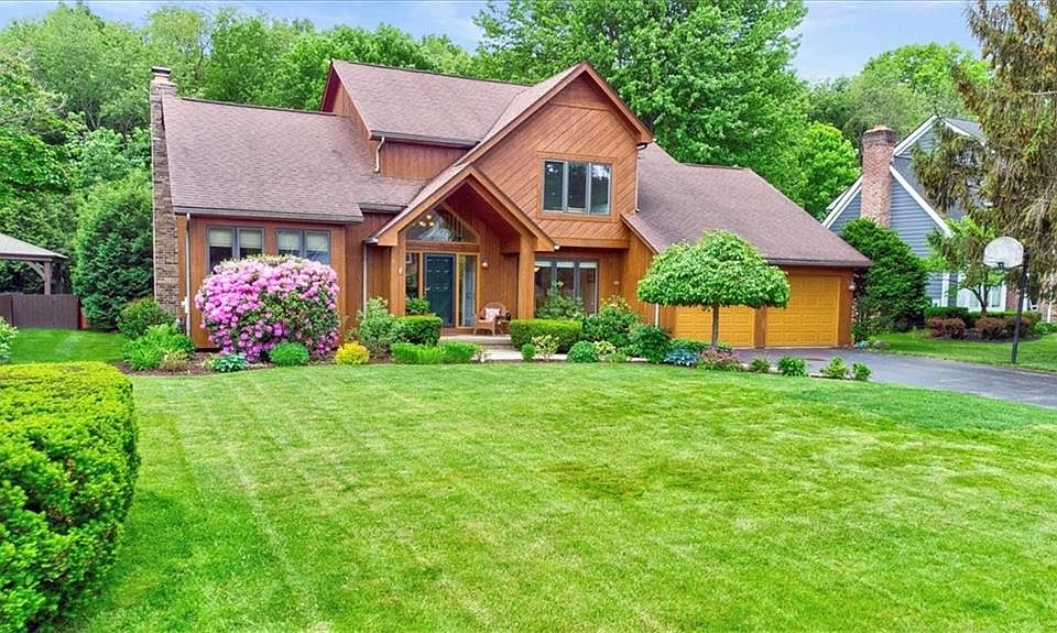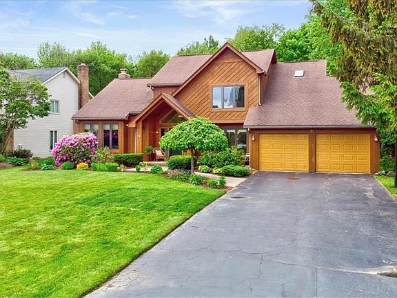 STUNNING 4 BED/2.5 BATH CONTEMPORARY in desirable Meadow Cove neighborhood has been lovingly maintained and upgraded by long-time owners! From the moment you enter, the pride of ownership shows! A light & bright 2-STORY FOYER welcomes your family and friends! Recently remodeled WHITE E/I COOKS KITCHEN w/ISLAND SEATING, QUARTZ COUNTERTOPS & STAINLESS APPLIANCES make cooking a joy! The adjacent GREAT ROOM w/STONE FIREPLACE SURROUND, SOARING CEILINGS & SKYLIGHTS is the perfect place to retreat after dinner! Large Dining Room, 1st Floor Office/Bedroom, Laundry Room & Half Bath complete the Main Level of this fantastic home! GLEAMING HARDWOOD FLOORS too! Upstairs there are (3) additional Bedrooms with (2) Full Baths! The Master Suite is a fabulous retreat boasting a LARGE en-suite Bathroom and loads of closet space! Neutral Dcor Palette throughout! Step outside to a HUGE DECK w/AWNING to your serene PARK-LIKE RETREAT! An AMAZING and IDYLLIC SETTING backing to rambling brook! ONE OF THE BEST YARDS in the area! All this under $500k and w/ERIE CANAL PATH access just steps away! WALK TO PITTSFORD VILLAGE! Pittsford Sutherland/Calkins/Jeff Rd schools. Delayed negotiations to June 5th@ 4pm.