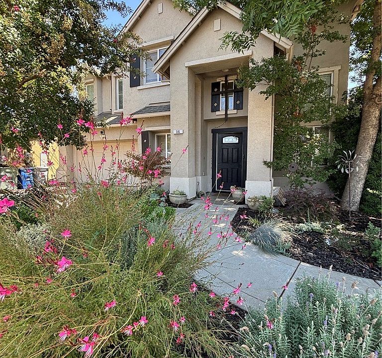 Welcome to this stunning former model home featuring 3 bedrooms, 2.5 baths, and a spacious loft. The home boasts upgraded finishes throughout, including porcelain tile flooring on the first level and staircase, newly installed Mohawk laminate wood flooring throughout the upstairs. The kitchen offers granite counters with matching backsplash, stainless steel appliances, walk in pantry, and a high-flow faucet. Enjoy multiple living spaces with both a family and living room. You will find a spacious primary bedroom with a slider that leads to amazing view off the balcony. The masterful outdoor retreat is perfect for entertaining, with a pergola draped in mature vines, herringbone paver patios, fire pit with seating, and a BBQ area designed for multiple grills or smokers. Mature, low maintenance landscaping and trees provide shade and help reduce energy costs. Additional features include a gas fireplace, upgraded ceiling fans, laundry room with sink and storage, insulated garage door with quiet opener and 240V outlet in the garage-ideal for EV Charging. A custom-built pizza oven can also be included for the right buyer.