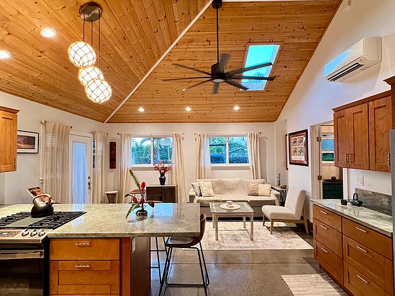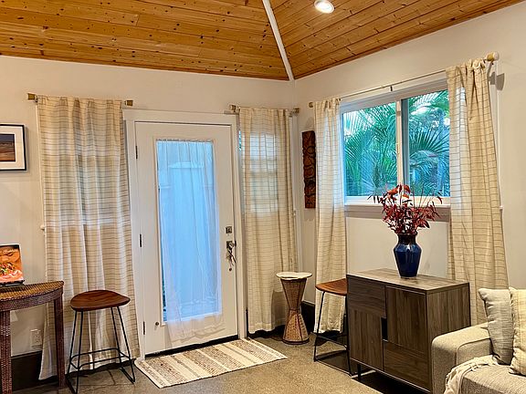 This fully furnished one-bedroom guest house features a bright open floor plan with spacious vaulted ceilings. The newly renovated living room and fully stocked kitchen look out to the private lanai and backyard. The bedroom's Queen Bed offers a quiet space for a good night's sleep and a full bath with an indoor/outdoor shower featuring rainbow rock. Easy walk to beach and minutes to world class surfing and wind surfing. Off street parking for one car. No pets allowed. Includes W/D, A/C, TV, Wi Fi. Six month lease with option to renew for six months. Parking for one car. Propane Included. Pest Control and Landscaping 1x/month included. No drugs, pets, heavy drinking or smoking. Scheduled Monthly Cleaning required by verified cleaning professional at $200/month.