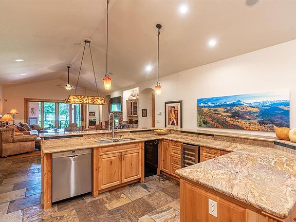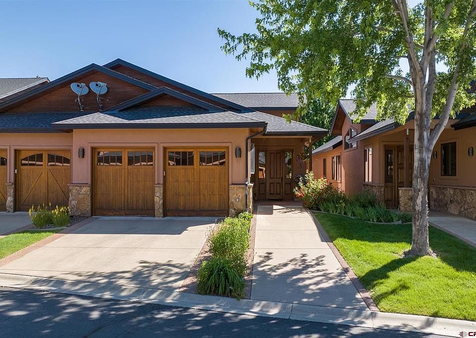 This stunning Cottonwoods townhome provides the epitome of luxurious living within the Animas Valley. Nestled in a meticulously maintained community, you can revel in the picturesque views of the red cliffs and majestic Hermosa Mountains that surround you. Upon entering, you'll find the home beautifully finished with carefully selected fine slate and hardwood flooring, arched entries into the bedrooms, custom wood cabinetry, gorgeous granite slab counters, stainless appliances, and 8’ stained solid core doors. The warm, rich colors and textures that envelop the home provide an atmosphere of unparalleled comfort and sophistication. The open floor plan and ample kitchen facilities make this a chef's and entertainer's dream come true. Holiday celebrations can be held with ease, where your fully equipped kitchen awaits with a large side-by-side fridge, a 4 burner stovetop with griddle, and stainless steel hood, while the breakfast bar can easily accommodate all of your closest friends. Guests can gather around the wet bar and beverage cooler to sip on their favorite beverages, with the stacked stone gas fireplace as a stunning focal point. The open, spacious living room features breathtaking views of the red cliffs in the Animas Valley, making it perfect for relaxing and entertaining. The well-appointed primary suite offers the perfect sanctuary, with a beautifully tiled walk-in shower, and extra-large jetted soaking tub, all surrounded by slate tile with brushed nickel fixtures that provide a spa-like experience. There is a spacious secondary bedroom and also an office/den. The perfect jack-and-jill bath sits between the bedroom and office/den, including separate vanities and a tiled walk-in shower. The covered patio out back is one of the nicest features of this home, providing a large, comfortable retreat to enjoy the outdoors, thanks to the outdoor fireplace and built-in BBQ grill. A seasonal stream flows past the patio into a lovely pond while the red cliffs of Missionary Ridge rise above the rooftops beyond. This beautiful backyard sanctuary makes it perfect for entertaining guests while admiring the changing seasons. This attractive home offers easy living with the HOA taking care of all exterior maintenance, landscaping, and snow removal, allowing you to sit back, relax, and enjoy your luxurious lifestyle. Located in a quiet neighborhood within easy walking distance of the Animas River, Dalton Ranch Golf Course, Trimble Hot Springs, and the Shops at Trimble Crossing, this home is the perfect vacation getaway or year-round residence. Just a few minutes from downtown Durango, this home provides everything you could ever need and more.