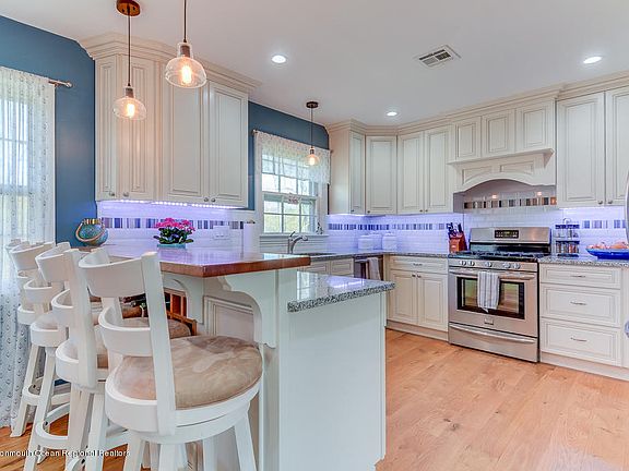 Fall in love with this amazing FULLY updated home in this highly sought after NAVESINK neighborhood. Enjoy the bright open plan layout w/rustic white oak 6'' plank flooring throughout the upper level. Bright airy living room leads to large dining room - both w/built in blue tooth speakers. The 2017 renovated kitchen is a ''WOW'' ! The custom designed wood cabinetry w/soft close doors and drawers, under counter lighting, granite counter tops and matching stainless steel appliances, which are still under warranty, are ready for family and friends. Great entertaining space w/ custom white oak counter includes 4 bar stool seating and matching built in wine rack.