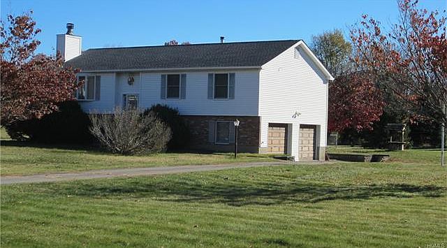 Rural Town of Montgomery, yet close to shopping, amenities, and transportation. One-owner solidly built raised ranch on almost 2 level acres. Bright kitchen with plenty of counter space and storage. Large living room with stone fireplace and great windows. Formal dining room with sliders to deck, dog door (removable), and dog run. Master with full bath and two closets, plus two more nice sized bedrooms on main floor. Sky-light in main bath brings in plenty of light. Finished lower level includes large family room, additional big room plus half-bath with laundry hook-ups. Two-car garage under house, plus detatched 2-car garage with wonderful built-in cabinets. Central A/C; efficient oil heat and hot water with additional storage tank. Great yard features a fenced area at back of house, plus additional fenced garden area and shed. Beautiful big pine trees along back and side of property. Sellers will even leave two garden tractors!