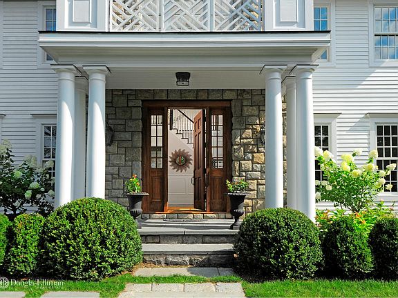 Modern and renovated classic colonial in Mid Country Greenwich on 1.16 acres in North Street (elementary) and Central (middle) school districts with 5 bedrooms and 5 full bathrooms (plus powder room) is asking $3,950,000. Recently built and even more recently renovated, this home is located off Stanwich Road at the end of a cul-de-sac on Montgomery Lane. Designed for today's living, the large white eat-in kitchen is anchored by a 12-foot marble island and appointed with custom cabinets and top of the line appliances including a SubZero refrigerator, a 6-burner Viking range, twin Bosch dishwashers and four SubZero refrigerator drawers. The perfectly scaled proportions of this home include an impressive master bedroom suite, 3 additional upstairs bedrooms (each with an en-suite bathroom), plus an additional 5th en-suite bedroom or play room on the main floor. The double-height great room, spacious living room, formal dining room with butler's pantry, wood-paneled study, attached 3-car garage, mudroom and full-house generator make this the ideal home for today's modern lifestyle. Mature plantings and manicured lawns provide privacy in an ideal Greenwich location that's close to town, the train and schools.