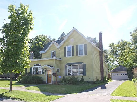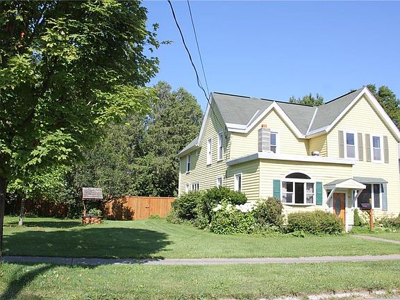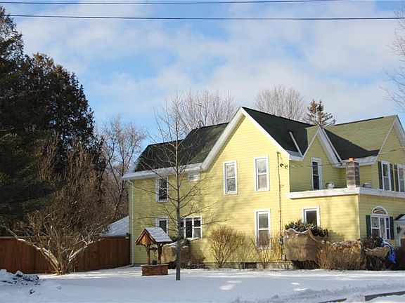 Village house with 4 bedrooms and the possibility of a bedroom on the first floor that could make it first floor living. You will love this backyard! Over a half acre, nicely fenced in so that you feel a great sense of privacy. Turn on trickling landscape waterfall for a relaxing atmosphere. Cement patio looks like stone. Nice sized kitchen with a formal dining room at front of the house. Mud room. Two full baths, one on each floor. A previous owner made a front porch an extension of the living room where there is now a pellet stove and nice view out the front. Pull down attic stairs to unfinished space that could be used for storage or possibly a room. Recently updated electric. Current owner uses electric heat and pellet stove, but oil furnace still in place and could also be used.