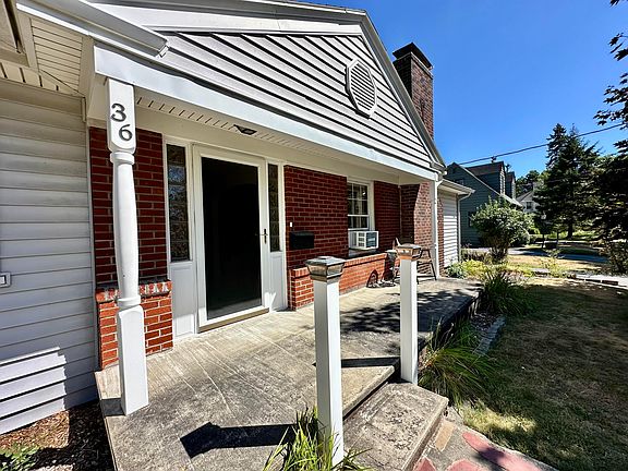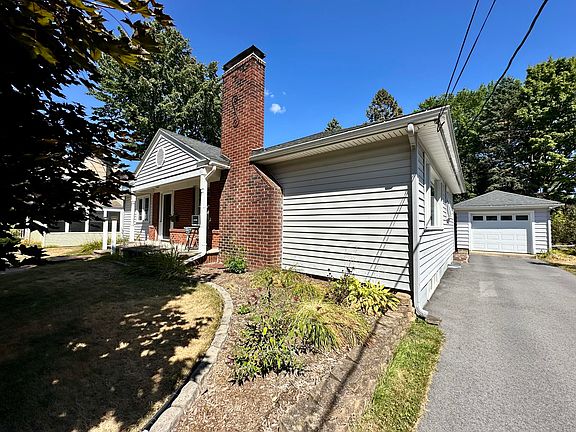 This charming and well-maintained ranch offers comfortable living in a convenient location close to the hospital, schools, parks, I-87, and downtown Plattsburgh. The home features 3 bedrooms and 1.5 bath, with original hardwood floors and woodwork throughout most of the home. A spacious living room includes built-in shelving, dining area and a wood-burning fireplace. The kitchen offers ample countertop and storage space. The enclosed back porch is heated and provides a cozy extension of the living area. Downstairs, the finished family room includes a woodstove insert and a half bath located in the adjacent storage/workshop area. Outside, enjoy a private and beautifully landscaped backyard along with a one-car detached garage. Recent updates include refinished oak floors, interior repainting, new window shades, garage exterior paint and door replacement (2022), replaced driveway (2023), and a new kitchen window and basement toilet (2025). This move-in ready home is ready for its next chapter—schedule your visit today. *Owner does not currently use either fireplace, inspection before use is recommended.