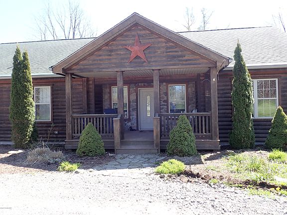 Well maintained home situated on 1.81 acres in sought after neighborhood. Modern log style ranch home with 3 bedrooms and 2 full baths. There will be plenty of storage with the 3 car garage and a circular landscaped driveway. Lovely front porch and back patio area for entertaining. There is a large walk in attic that is waiting to be finished for extra living space if desired. Material is in the garage and will remain with the property. Property is in a producing well receiving royalties that are negotiable with the right offer. Additional photos will be coming when Susquehanna County moves to the yellow phase. Photos were taken by seller.