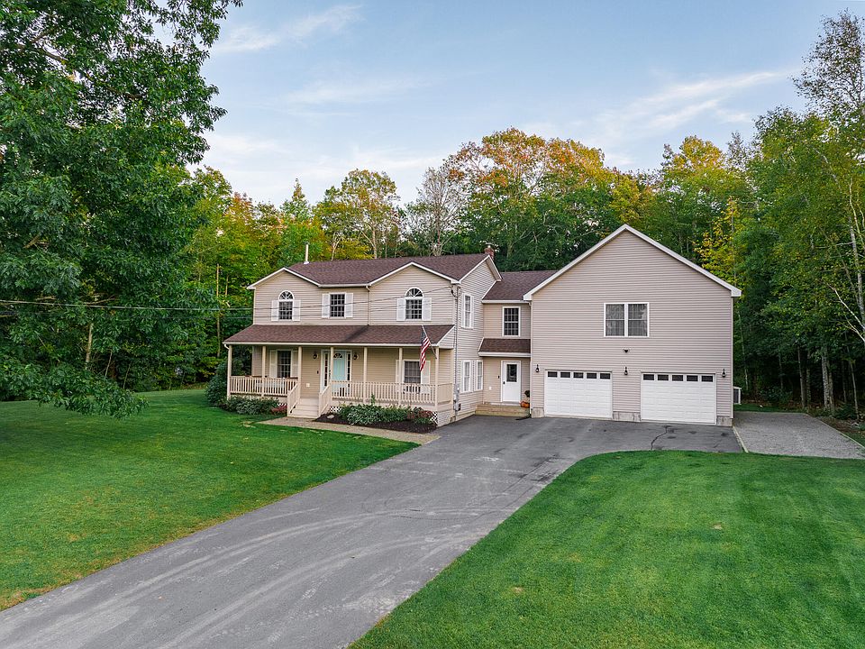 Stunning Colonial in one of Hermon's most desirable locations. 4 bedrooms, 2.5 bathrooms with an office. Not only has this home been well maintained but these owners have expanded the square footage and made significant renovations. The list of updates includes a new 2-car garage & primary suite above, dreamy mudroom, new butcher block countertops, professionally painted cabinets and trim, newer SS appliances (2022), new vinyl flooring, an electric fireplace in the LR, 4 heat pumps, heat sensors in all rooms, granite mailbox post, boat pad, gravel walkway, Rings Paving-paved driveway (2021), Gray Earthworks added culvert under the driveway & retaining walls on both sides, new gutters to the addition, new gutter guards on the whole house (2021), a new roof on the house (2018), new garage roof (2021), and so much more!