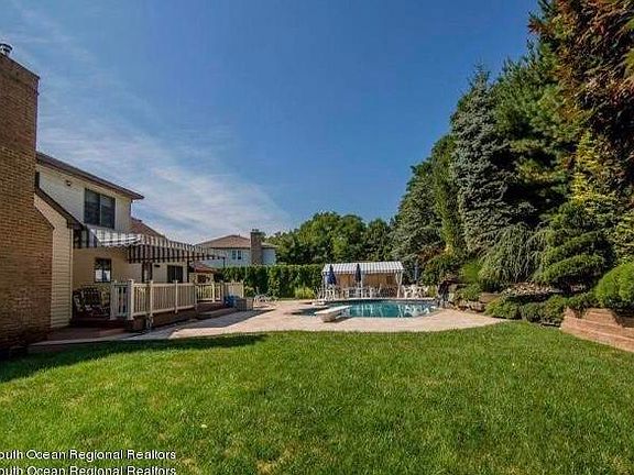 SUMMER RENTAL June 20th through September 1st 2019.Enjoy your summer in one of Eatontown's finest homes. Beautifully landscaped, almost half an acre with a pool, waterfall, music system and pool house equipped with a full kitchen and full bathroom. Extra large 2 car garage with a roundabout driveway.Enter through the 2 story foyer, you will be delighted to see a formal dining room, family room, Brand new updated kitchen with all high end appliances, living room with fire place, built ins and more. This home features 5 large bedrooms and 4 full bathrooms. Large Master bedroom with huge walk in closet and bathroom with a jacuzzi hot tub. Enormous full basment with a bonus room, game room and office.Come live in luxury this summer