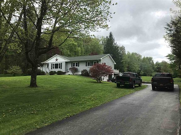 Well maintained and totally updated ranch on 3.76 cleared and level acres just outside of town with a country feeling. 3 bedroom, 2 full and 1 half bath. Beautifully renovated open kitchen, bluestone backsplash and Granite countertops, and maple cabinets including a whole separate room for dining! All appliances are newer. The bathrooms have all been renovated. Original wood floors all throughout the house. The master bedroom is very open and leads to a private door onto the deck where the hot tub and pool awaits! The master bathroom has just been redone and is spa likel! The living room is very open and has a gas fireplace. The stairs near the living room leads to the fully finished basement that includes an entertainment room, full bar, woodstove, and a half bathroom/ laundry room. The door downstairs leads to the attached two car garage with electric garage door openers. The outside amenities include a newly paved driveway, Composite decking, Above ground pool, Hot tub, cleared and level private backyard with apple and fruit trees. Low taxes! Your family will love this home!