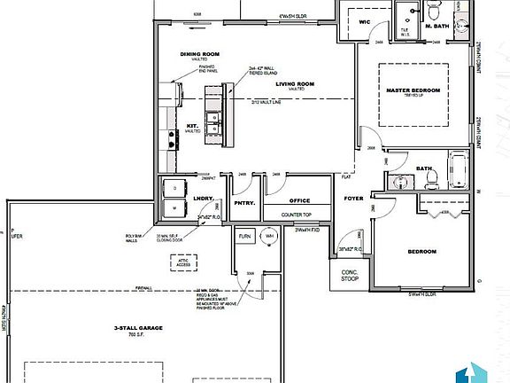 - Master Downstairs, Main Floor Laundry, Master Bath, Tray Ceiling(s), Vaulted Ceiling(s)