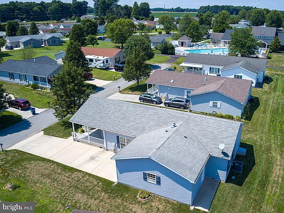 This lovely Churchill model home features a big breezy covered porch, formal living & dining rooms plus a large Den with built-in workspace, well appointed kitchen with center island, breakfast nook, and all appliances included, two comfortable bedrooms two full baths including the primary on-suite with double vanity and walk-in shower, handy laundry room with laundry sink, second refrigerator, and a one car garage situated near the pool and clubhouse in Barclay Farms; Kent County's premier 55+ active lifestyle community. Community amenities include: pool, clubhouse, fitness center, spa, library, game rooms with billiards table, walking paths, catch & release fishing pond, fitness classes , various clubs & other activities to enjoy. Land lease $583.61 per month includes all community amenities, lawn maintenance, trash removal, road maintenance & snow plowing. Quiet setting conveniently located in Camden Delaware with easy access to shopping, restaurants, healthcare, and the Delaware beaches.