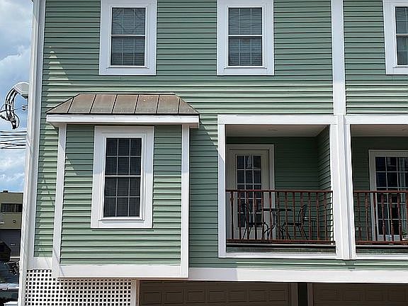 LOCATION LOCATION LOCATION! Come see this gem for yourself! END UNIT with lots of natural light, is set back from Main St. just 3 blocks to train and town center. Granite & stainless kitchen, gas cooking. Large private TWO CAR GARAGE and covered carport, 2nd floor laundry, ample storage, custom closets shelving & private balcony. Roomy bedrooms with en suite baths. Master bath has separate shower and jetted tub. Finished 3rd floor can be used as media rm, playrm, library, office, guest rm, exercise rm or art studio.