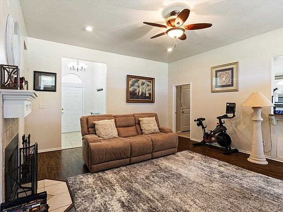 Mature landscapingStorm shelterPrivacy fenced backyardBrick homeOpen floor planWood burning fireplacePrimary bedroom and ensuite