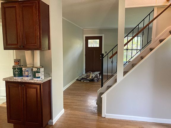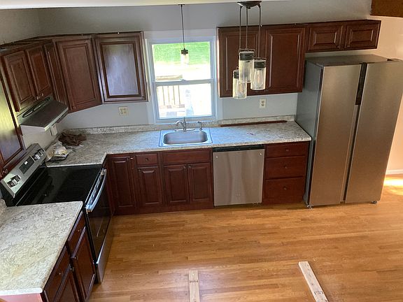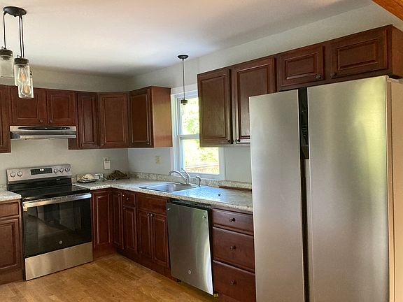 2 BR 1 Bath Cape on private, flat, partially wooded 1 acre in quiet neighborhood. Hardwood floors and freshly painted throughout. Both the Livingroom and Dining room are open to kitchen with island and new stainless electric stove, refrigerator, and dishwasher. First floor has a bedroom with the 2nd BR the entire upstairs with new hardwood floors and walk-in closet. Relax on the roomy deck while looking out on the peaceful, private acre surrounded by woods. Basement with washer/dryer hook up ready for your appliances. Oil furnace with forced hot air heat. Detached garage. Rent does not include utilities, oil, or water. Town trash removal included. No pets. Application with credit check at tenants' expense is required (see link below). No pets. Tenant responsible for all utilities - water, electric, oil heat and snow removal. Lease duration of 2 years.
