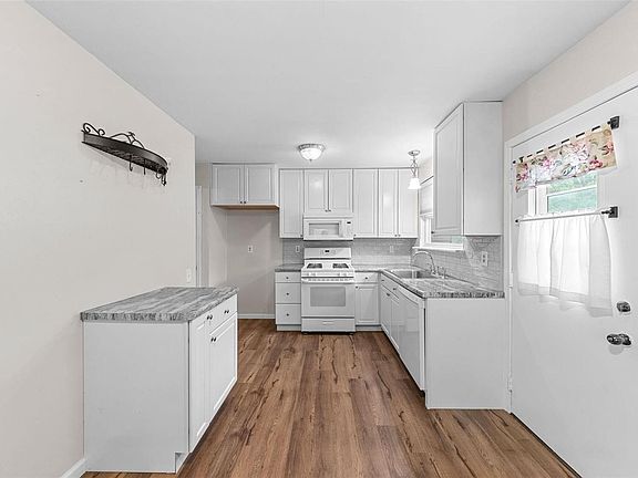 This well maintained, 3-bedroom, ranch home is sure to impress! Some updates include a full kitchen remodel, bathroom remodel, newer HVAC system, 8-year-old roof, six panel doors, & newer flooring. Upon entering you will be greeted with a spacious living room, that leads to the kitchen & dining area that features newer flooring, cabinets, countertops, appliances, & lighting. The full bathroom has a newer shower/tub surround, vanity, & toilet. The bedrooms finish off the main floor space with a walk-in closet & organizers in the primary bedroom. The basement is unfinished with a ton of potential, if you wish to finish it. The outdoor space includes a stamped patio, a small deck, fully fenced backyard, garden area, & shed that stays with the property. This home is affordable, adorable, & conveniently located close to shopping centers & restaurants with easy highway access. Don’t let it slip away, make your appointment today!