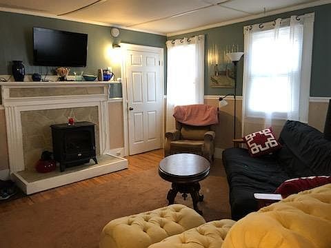 Duplex with first and second floor units. 3rd floor is used for storage. Each unit has 2 bedrooms, full bath, kitchen and living room. First floor unit has one room being used for storage but could be converted back to the second bedroom, with a charming living room and kitchen with lots of cabinets and counter space. Main entry to both units off the covered porch, with original staircase leading to the second-floor unit which is open concept with exposed beams, eat in kitchen with breakfast bar & newer kitchen cabinets. Fireplace (non-working) adds a comforting touch. Paved driveway with 2 parking spots for each unit. 2 outdoor areas for each tenant to have a grill and seating. The location is within walking distance to downtown and waterfront. New roof shingles, extensive work done to portion of the basement, and other updates done to property in the last few years. Photos taken before tenants moved in.