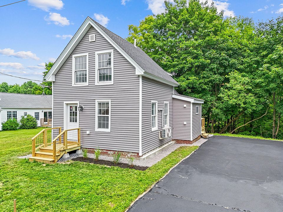 This fully renovated New Englander offers modern amenities and classic charm. With brand-new electrical, insulation, heating and plumbing systems, you can the enjoy peace of mind of this truly turn key home. Inside, an open and airy feeling living space is filled with natural light from the southern-facing exposure. The updated kitchen features stainless steel appliances, sleek quartz countertops, eat-in space and ample cabinetry—perfect for meals and entertaining. The home has three spacious bedrooms, providing room for various needs. The master bedroom is a peaceful retreat on the first floor, while the other bedrooms are versatile and comfortable each with their own heat pump providing direct control of heating and cooling for each room. Both the full and half bathrooms have contemporary fixtures and finishes and the first floor bathroom features a washer/dryer hook up allowing for true one level living should you desire. Outside, the side yard is ideal for outdoor activities, play, or relaxation. Whether hosting a BBQ, gardening, or enjoying a sunny afternoon, this outdoor space to the left side of the home has many uses. This home is close to local amenities, schools, and parks, offering convenience and a welcoming environment. Don't miss your chance to own this move-in-ready gem. Schedule your showing today!