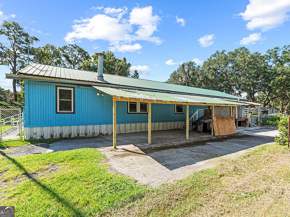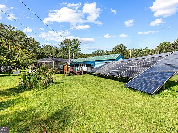 Spacious four-bedroom, two-bath doublewide home with 2,128 sq. ft. on a .29-acre lot in Harrietts Bluff Village. Just a 7-minute walk (about 0.3 miles) to the Harrietts Bluff public boat launch on the Crooked River, this property offers great access for boating and fishing. The split floor plan includes a large primary suite with sitting area, walk-in closet, and ensuite bath featuring double sinks, separate shower, and corner garden tub. A huge living room and a separate den with fireplace provide multiple gathering spaces, while the oversized eat-in kitchen offers both a breakfast bar and room for a large dining table. A spacious utility room and three guest bedrooms complete the layout. Features include a metal roof, updated vinyl windows, central HVAC, aluminum wheelchair ramp, whole-house propane generator, paid-off solar panel array (not currently connected), and log cabin-style siding. The outdoor space includes a sparkling screened pool with deck, fenced yard, mature fruit trees, screened porch, and an additional parking pad. Situated on 2 quiet dead-end streets on both sides, the home provides both privacy and accessibility. Drive times: 7-minute walk to the Crooked River boat launch, about 15 minutes (11 miles) to Chick-fil-A in Kingsland, 25 minutes to Naval Submarine Base Kings Bay, and 40 minutes to Brunswick or downtown St. Marys. Located in Flood Zone X with no city taxes. This estate sale property offers space, functionality, and potential in a desirable location.