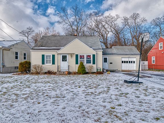 You don't need a big budget to own a great home! Bring your decorating ideas and finishing touches to make this 4 bed 2 bath Cape your own special place! Inside offers easy flow living room with wood floors & 2 first floor bedrooms along with full bath. Follow that into the country kitchen complete with pass through and breakfast bar. Spacious dining area which opens to beautiful glass sun room, perfect for entertaining and family gatherings. Sliding door leads to a lovely deck with electric awning creating a great space to enjoy morning coffee or al fresco dinner overlooking fenced-in potential garden area. Small above ground pool can stay for buyers enjoyment & completes your mini outdoor oasis. Upstairs are 2 more spacious bedrooms and bath. Downstairs is a partially finished basement with rec-room. All this & attached 1 car garage. Close to many area amenities and highway access. Don't miss your opportunity to own this affordable home! Seller requesting "As is" sale.