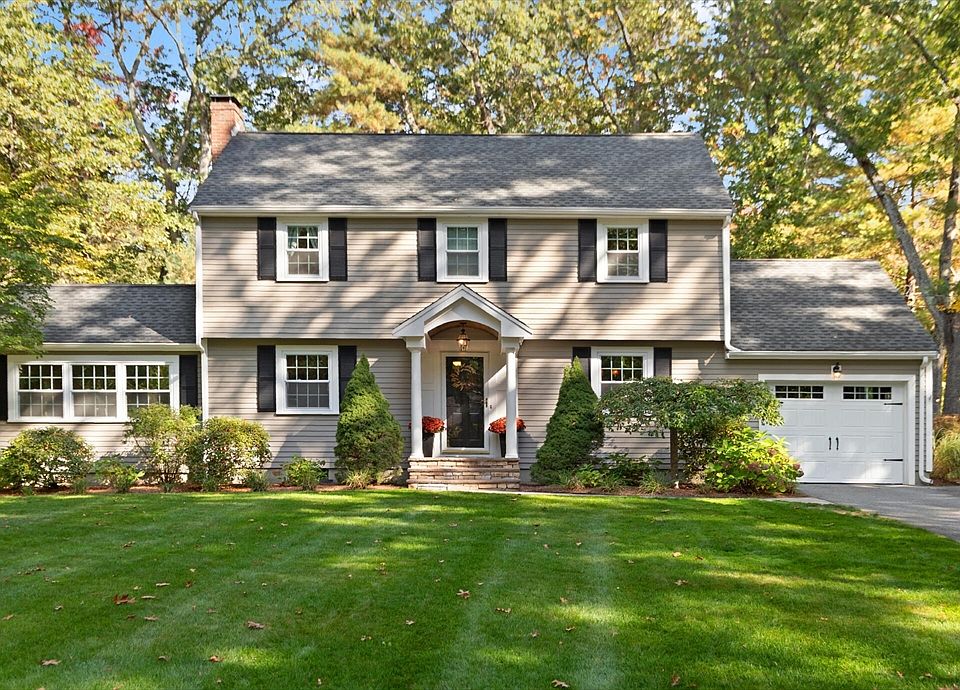 This picture-perfect colonial home is nestled in a peaceful cul-de-sac and exudes maximum curb appeal! Meticulously maintained and updated, this residence features upgraded windows and doors, a brand-new heating system, central air conditioning, and much more! The grand vaulted family room serves as the heart of the home where a wood-burning fireplace acts as a warm focal point, illuminated by oversized picture windows for abundant natural light. This room also provides easy access to two beautiful outdoor patios, perfect for dining al fresco, sipping morning coffee, or entertaining guests. The yard is private, and expansive, offering hours of enjoyment and play. A cozy front-to-back living room features French doors that lead to a bright and cheerful home office or playroom. The second level is home to 4 bedrooms and a full bath, while the lower level boasts a great bonus room, ample storage, and a large unfinished space with great finish potential. This home is truly a gem!