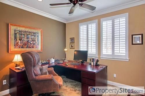 You'll love the architectural enhancements in this model-perfect 2008 Pasadera at Glenwood home. The luxurious home, situated on a corner lot facing a lush greenbelt, features arched passageways, crown molding, recessed lighting and plantation shutters. The focal point of the dining room is a beautifully appointed arched fireplace surrounded by a seating-height bull-nosed hearth finished in Aztec travertine and sandstone. The kitchen-greatroom is truly the heart of this inviting home. A perfect setting for entertaining family and friends, it features a huge center island, GE Profile appliances, masacrello granite countertops, dark chocolate maplewood cabinetry, walk-in pantry and expansive storage space. This floor plan offers a ground floor room that can be used as an office, library or bedroom. The second story includes a laundry room, three spacious bedrooms, and a master suite that offers a spa-like retreat with upgraded bath, travertine and a large walk-in closet.