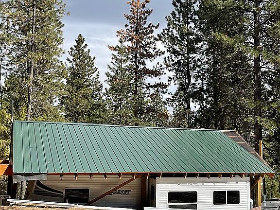 Pole barn construction home/shop on 5 acres. Skid steer, tractor, 5th wheel, 2 campers, 2 side x sides. Current permit in place for shop but in the process of changing to home/shop. Shell is done, most interior framing is done, some electrical and insulation is done. Lots of Pella windows and big doors. Beautiful when finished for the right handy person with building carpentry skills. power, well , septic, phone, and 1 covered RV, and 2 more rv spaces.