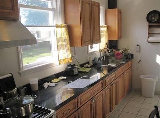 Two bedrooms each unit, double parlors, updated kitchens in each, owner's unit has a chef's kitchen. Three lots, two garages are included in the sale.