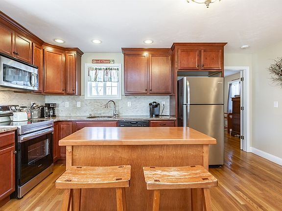 Step into timeless charm & modern comfort at this beautifully maintained 3 bedroom, 2 bath Cape style home right in the center of town! This home offers the perfect blend of space, style, and functionality for today’s lifestyle. You are welcomed with sun-filled living areas, gorgeous hardwood floors & an open-concept kitchen featuring granite countertops, stainless steel appliances, tiled backsplash, maple cabinets & a cozy breakfast nook. Also featuring a spacious dining room - living room combo this making the space perfect for entertaining guests. The primary suite offers a luxurious private en-suite which offers a tiled shower, double closets & cathedral ceilings. Enjoy summer evenings on the back deck overlooking a beautifully landscaped yard — ideal for gatherings, pets, or peaceful morning coffee. The updates throughout make this home completely move-in ready which includes mechanics, roof, windows, central air, town water & sewer with propane gas. Book your tour today!