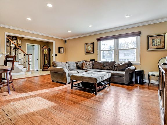 Upgraded Bryant boasting vinyl siding, rounded columns, hardwood floors thru out and Thermo pane windows. Redone State of the art kitchen with newer stainless appliances and kitchen wall open to Living Room. Home boasts lots of decorative moldings. Dining Room offers box bay window open to rear yard. All bathrooms have been redone. Huge master shower and large custom vanity. Hardwood Floors in Master bedroom.Master bath floor has radiant heat. Fabulous finished basement only a few years old. Gorgeous, private professionally landscaped yard with fire pit. Great Home, Great Community, Great Schools! Ready for new owner. Absolutely move in condition with no disappointments!
