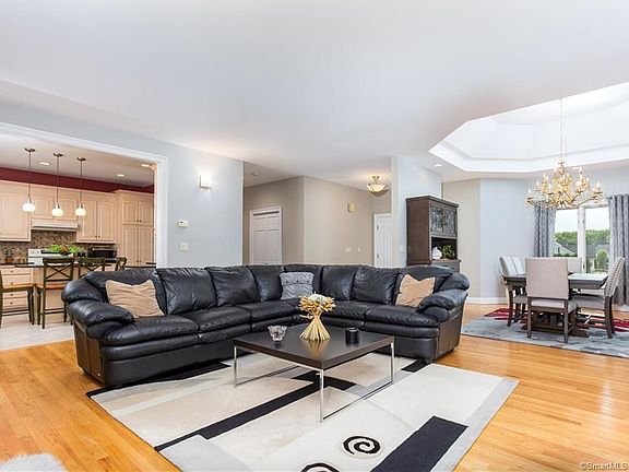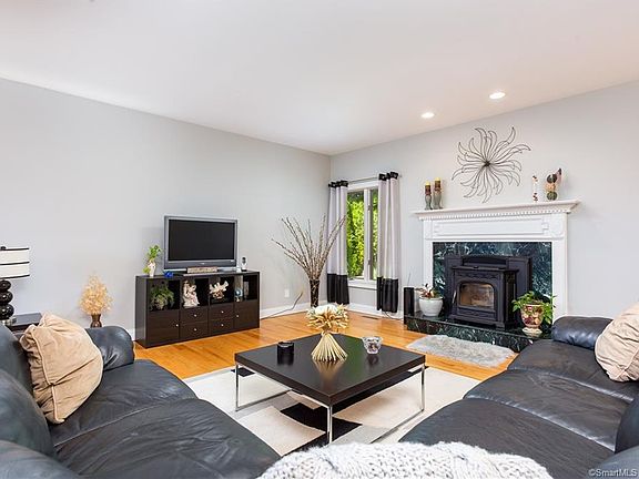Welcome home to this stunning 4 bedroom home in desirable neighborhood featuring an open floor plan, eat-in kitchen with granite counters, 42 inch custom cabinets, island & 12X12 angled tile flooring also in foyer, hallway & bathrooms. Formal dining room with cathedral ceilings, spacious living room featuring marble fireplace with wood mantle and Harman pellet stove, first floor master bedroom with master bath, den, first floor powder room & 3 bedrooms/full bathroom on the upper level. Hardwood flooring through out, no carpet, extensive wood trim, interior painted, 9ft ceilings, recessed lighting, solid wood 6 panel doors, 3 zone heating, central air, central vac & 2 oil tanks. Beautiful backyard perfect for entertaining featuring stone fireplace, paver patio, paver walkways, extensive landscaping, irrigation system, & level lawn areas. 2 car attached garage, brick front porch & conveniently located within minutes of schools, shopping, restaurants & additional amenities.