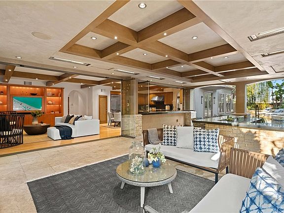 - Recessed Lighting, Beamed Ceilings, Balcony, Living Room Deck Attached, Open Floorplan, Built-in Features, Crown Molding, High Ceilings, In-Law Floorplan