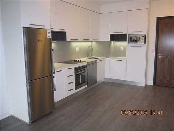Beautiful, Immaculate, Freshly Painted 1 Br Unit With A Full Size Balcony (Over 100 Sf). Unobstructed Westerly View Of Serene Ravine And Lake Ontario* Unit Features An Open Concept Floor Plan, 9' Ceiling, Quality Laminate Floors, Quartz Countertop, Undermount Lighting In Kitchen, A Generous Size Bedroom And More.*Walking Distance To Shopping, Restaurants And Public Transportation. Bike And Walking Trails Along The Water Front. Short Ride To Downtown Toronto.