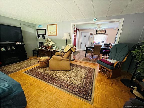WATERFRONT mobile home on the QUINEBAUG river where you can kayak, fish or watch the kayakers go by. HUGE back YARD w/ 2 SHEDS w/ POWER & WORKSHOP, an area for your picnic table and a 14 x 12 DECK to enjoy the evenings. OPEN FLOOR PLAN w/ SOME SHEET ROCKED walls (EXCEPT living room), REPLACEMENT WINDOWS, FRONT DOOR, 8 year old METAL ROOF. 22 x12 BRIGHT living room w/ WOOD PARQUET FLOORING and LARGE storage closet opens to dining area and REMODELED kitchen (cabinets & counters), TILED floor w/ WASHER & DRYER. ONE side has a bedroom w/ UPDATED bathroom vanity, tiled floor & toilet and BIG closet. OPPOSITE side has a bedroom w/ BAY WINDOW and it's own bathroom. PAVED DRIVEWAY, 55 and OLDER, RENT is $275 and includes, trash, water, sewer and plowing. YOU MOW your OWN lawn.