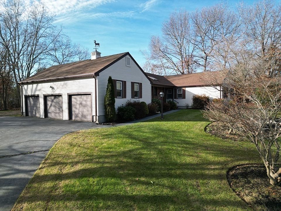 HIGHEST AND BEST BY 5:00 PM TUESDAY DECEMBER 6 Welcome to Massapoag Estates! Don’t miss this incredible opportunity! One floor living at its finest! This classic Ranch offers a spacious eat in kitchen, with tons of cabinets and granite countertops. The kitchen opens to a light filtered, family room with a traditional brick fireplace and built-ins. King size primary bedroom has en suite bath and huge walk-in closet. Three additional bedrooms or office space, and a cozy den with three huge windows, full tiled bath, and an extra half bath.Covered porch overlooks the newly seeded backyard, with sprinkler system and a brand new septic! An oversized three car garage completes this fantastic home. Add your own finishing touches or move right in! This sprawling ranch with front porch sits on a mature landscaped knoll in one of Mansfield’s sought after neighborhoods. You won’t be disappointed!