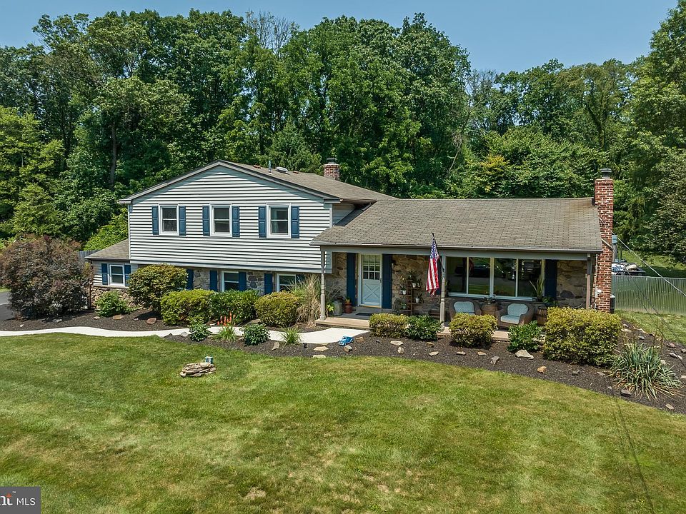 Welcome to the Woods of Pebble Hill! Come and see this beautiful Doylestown home on just over an acre. As you enter the front door, you will see the reimagined formal living room with wood burning fireplace and hardwood floors. Next, you will come to the dining room with sliding glass door that will put you on a large Trex-style deck with a built in Viking hot tub. Back inside, you will find the eat-in kitchen with freshly painted refaced cabinets. Then head upstairs to find the four bedrooms and two full baths. One bedroom is being used for a nursery, one bedroom is being used for an exercise room, one bedroom as a guest room and one is the main bedroom and all have hardwood floors throughout. The main bedroom has two closets, one of which, is a walk in. Head down two levels to find the living room that also has a wood burning fireplace. Off the back of this room is a screened in porch. On this level is the two car garage, powder room, and the laundry. To complete the inside of the house is the basement with ample storage shelves and mechanicals. Outside you will enjoy the private backyard with the concrete in-ground pool. If you are thinking about putting in a pool, you can save your money and put it into other improvements you would like to do. This pool would cost at least $100,000 and take a year or so to get installed! Raised bed garden boxes and a greenhouse, will allow you to do some light gardening. All of the windows have been replaced and capped with aluminum. Enjoy the private small town feel of this home while being close to downtown Doylestown where you will find many shops, eateries and entertainment. Close to major travel routes and other conveniences like the train.