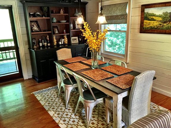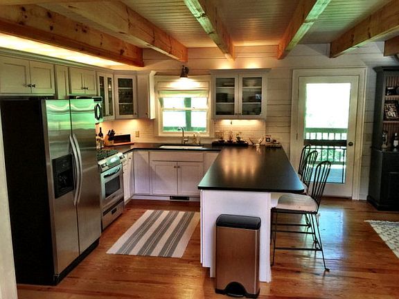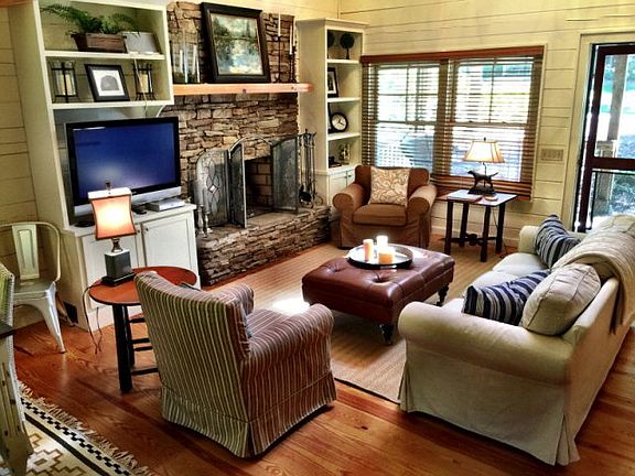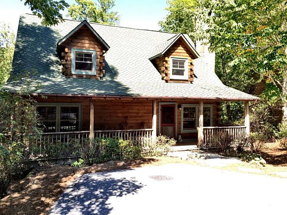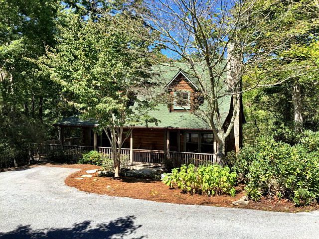 Warm three bedroom two bath home with a mountain log cabin feel located in a quiet wooded area of Trillium Village. The extensive use of pine throughout this family retreat is complemented by a covered porch which surrounds the home on three sides and encompasses a great stone wood burning fireplace with gas starter. Family and friends will also covet the open living design of this floorplan with its own stone fireplace and an adjacent dining area. In anticipation of great mountain gatherings ahead, the home is currently configured to sleep 8, plus room for a convertible couch in the loft family room. The house is about equidistant between the Trillium Clubhouse area and The Landings lakeside restaurant area . Ownership/Membership will include generational privileges and all of the unmatched Trillium Links & Lake Club family friendly amenities, including deeded lake access.