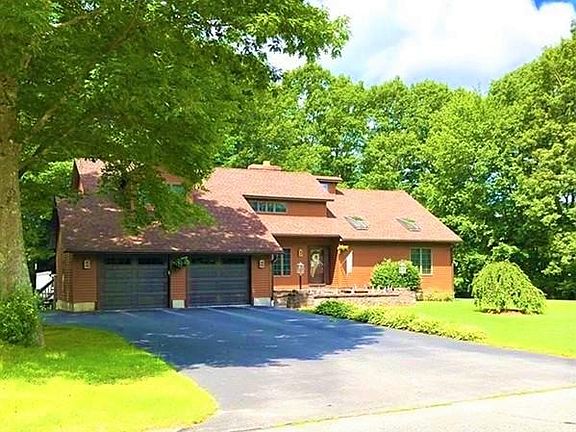 Meticulously Maintained Custom Built Contemporary Home with over 3,000 sq. ft. of living space. Located on a desirable cul- de-sac abutting golf course. Original owners have loved & cared for this home & it shows w/ complete attention to detail! Nice level lot, 2 car garage w/ new doors, Newer roof (2 years old), Cedar Siding (recently stained), Newer gutters & downspouts, New skylights(automatic). Beautiful kitchen w/ tile flooring, granite countertops, & stainless-steel appliances, center island leading into eat in kitchen area. Living room w/ vaulted ceilings, gorgeous brick fireplace, French doors leading to large back deck. Master bedroom w/ engineered wood floors, 2 closets, & private bathroom. Den/family room, dining room, and ½ bathroom w/ laundry all on first floor! Second floor features 2 more large bedrooms, 1 full bathroom, and walk in attic space. Oil heat w/ additional radiant heat, wood stove in basement, & backup generator hook-ups. New Septic to be installed.