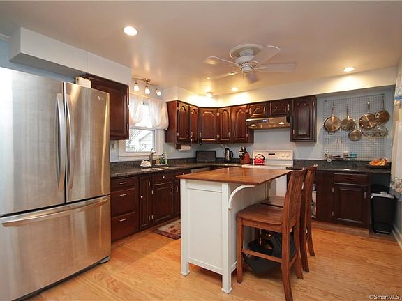 This wonderful Cape has everything A remodeled kitchen, 2 full baths, an open floor plan and a fantastic neighborhood The bedrooms are spacious and there is hardwood throughout. There is an underground dog fence, and the backyard has lots of room to roam. The kitchen has a lovely custom island and dark cabinets. The living/dining areas are large and open, and the fireplace ready to warm you during the cold winter nights. The master and upstairs bath are freshly painted. This home is move-in ready and will not last long