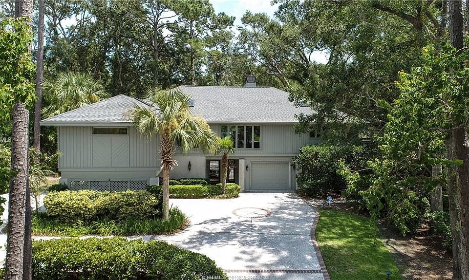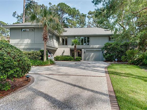 Design integrates outside light & views of 17th green of Club Course & marsh to water views across the road. Located at an exclusive Sea Pines address, this elevated home is extensively updated, ideal br separation, ground level offers a spacious entry, screened porch, multiple storage/bonus rooms, air conditioned garage. The second floor gives a feeling of living outdoors with an eat in kitchen, open dining area, great room with soaring ceiling & fireplace, den/ 4th br with wet bar & cherry cabinetry, 3 brs, master spa, jack & jill bath for guests & 2 decks. All new pipes,25yr warranty.