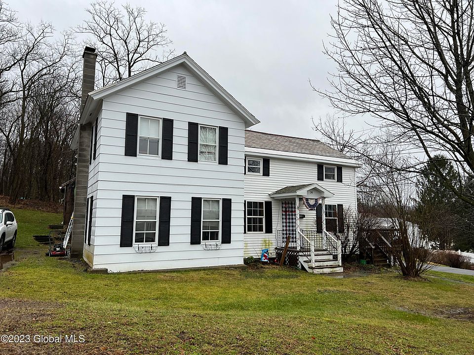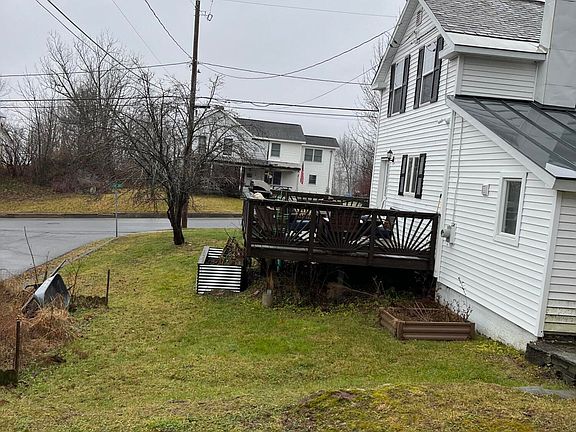 small table and a door to the spacious deck. Off from the kitchen is the formal dining room (open stairway to the 2nd level is located in this room. Huge, open living room! 2nd level has hall at the top with a linen closet and other storage. Off from that is a full bath, a bedroom (currently used as an office), w/ walk in closet, and 2 other bedrooms, one with walk-in closet. New oil tank, new sewer line from the house to the street. Storage shed. Many updated windows. New hot water heater. Crawl space basement, with rock out cropping.
