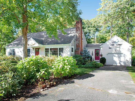 Privately nestled behind hedges of burning bush this masterfully renovated shingle-styled 4-bedroom, 3-bath home reflects the creative style of the present residents. Since their ownership the floor plan has been altered to accommodate an expansive first floor primary bedroom suite, spa-like bath, walk in closet and dressing room with access to a private deck overlooking the lush back yard and perennial gardens. Any cook will be delighted in the kitchen featuring breakfast bar, ample storage, quartz countertops, a 6-burner gas range and stainless appliances supported by a generator if necessary. A dining room, living room and additional bedroom that is equally suited as a home office complete the first-floor plan. The 2 bedrooms on the second floor share a lovely bath and access to a deck with picturesque views of the gardens below. The finished area in the lower level is uniquely suited for the hobbyist or collector complete with wine cellar. This pristine home located in a desirable location with access to all the amenities charming Sandwich Village has to offer including shops, museums, restaurants, beach, and harbor and is only an hour from Boston and Providence.