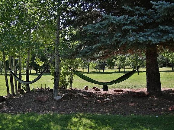 This 3 bed, 2 bath plus an office sits on 1.42 acres with mature trees in a tucked away neighborhood. It sits on corner lot where the backyard is fully fenced, the whole property has a sub-irrigated sprinkler system with water rights on top of the home having S.A.W.s water and home is now on natural gas. RV parking is hidden in the trees and there is still room for a shop here! Home has received lots of updates in last 9 years from current owners, including a remodeled kitchen, a pellet stove, and a new wood stove. Your backyard retreat is private, whether you want to be on the over-sized deck or add a hottub to the lower patio. It's 98% paved from town to this country property!! **Owner is a licensed real estate agent in the state of Wyoming.